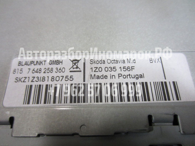 МАГНИТОЛА BOLERO 1Z0035156F Skoda Oktavia A5FL 2010г без кода разблокировки. Можем разблокировать за отдельную плату. Skoda Bolero BLAUPUNKT плюсы и минусы магнитолы Skoda Bolero BLAUPUNKT (1Z0035156F) по сравнению с майфуном на андроиде: + отличный звук + штатное родное ГУ, не высаживает аккум, высокое качество сборки на нормальных компонентах + холодная загрузка 5 секунд и полная готовность к работе в любом режиме + простой и удобный интерфейс пользователя, на корректном русском языке + никаких затупов в любых режимах и температурах, все работает мгновенно + после выкл/вкл запоминает последний режим работы (даже mp3 начинает играть c места остановки) + прибавление/уменьшение громкости в зависимости от скорости (настраивается в меню) + на максимальной громкости не рвет динамики басами + качество и дальность приема радиостанций FM-AM реально выше всех похвал + полное управление с мультируля всеми режимами + транслирует в приборку RDS, сохраненные названия станций и mp3-теги на русском/английском + вывод на экран предупредительного сообщения и сигнала о недостаточном заряде аккумулятора, затем автоотключение + удобное/крупное/быстрое отображение данных климат-контроля, попогреев и парктроников + встроенный чейнджер на 6 дисков Audio-CD/mp3/WMA + аналоговый вход звука AUX (гнездо под джек 3.5мм) + слот под SDHC карты для музыки mp3/WMA (32Gb работает, больше не проверял) + полная энергонезависимость, при отсутствии питания не сбрасываются настройки и память радиостанций + высокая стабильность работы, не бывает глюков никогда — нет функционала андроида — нет GPS навигации — нет DVD/Wi-Fi/USB/Bluetooth (BT и USB можно доставить) — не поддерживает камеру заднего вида — не подключить ТВ DVB-T2