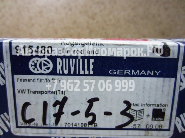 Ruville (011) Новый Левый 701419811E Размер конуса [мм] 14,7 Размер резьбы 1 M16x1,5 Размер резьбы 2 M12x1,5 A